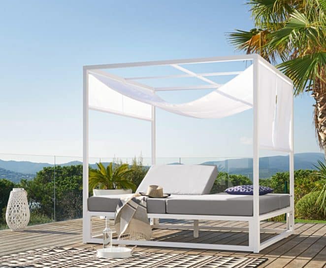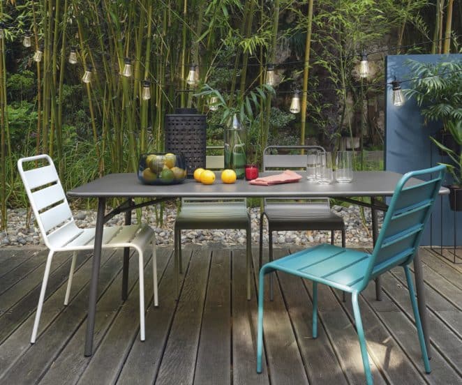 Comme pour la plupart des meubles de jardin, utilisez des matériaux faciles à nettoyer et adaptés à une utilisation en extérieur . Le métal est particulièrement adapté, qu’il soit brut ou coloré.