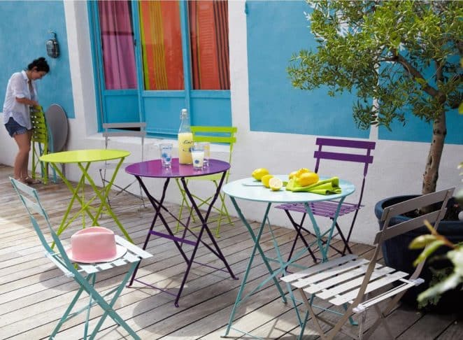 Pour une terrasse branchée, n’hésitez pas à adopter l’esprit mix & match , en multipliant les différentes couleurs ou formes des chaises.